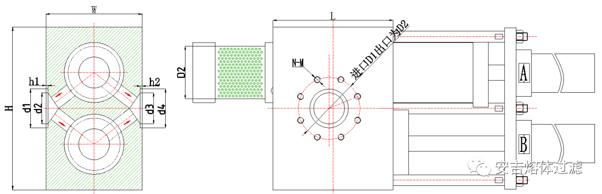 换网器设计为双柱或四柱滤筒式结构,过滤面积超大,相当于两个或四个长效滤网同时工作,可实现不停机换网,设有引料排气系统,可充分排除物料中的气体,保证产品质量,设有静态混炼结构,提高产品稳定下可实现自动反冲洗功能。换网器安装于挤出机和模具之间,通过液压系统控制工作状态。