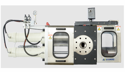 单柱双工位液压换网器,性能显著提高,流道短,停留时间短。