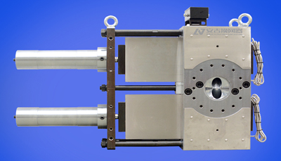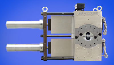 双柱双工位液压换网器,性能显著提高,在线换网,不中断料流。