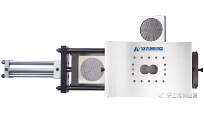 单柱双工位液压换网器,性能显著提高,流道短,停留时间短。