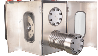 超大面积柱式液压换网器,超大过滤面积,在线换网,不中断料流。